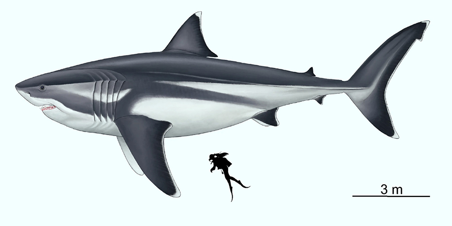 A 16-m- (52.5-foot) long megalodon had a head 4.65 m (15.3 feet) long, a dorsal fin 1.62 m (5.3 feet) tall and a tail 3.85 m (9.4 feet) high, according to...