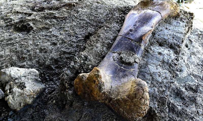 Scientists have unearthed a huge two-metre (6.5-foot) dinosaur bone in a winegrowing village in southwestern France dubbed a "national treasure" for its prehistoric gems.