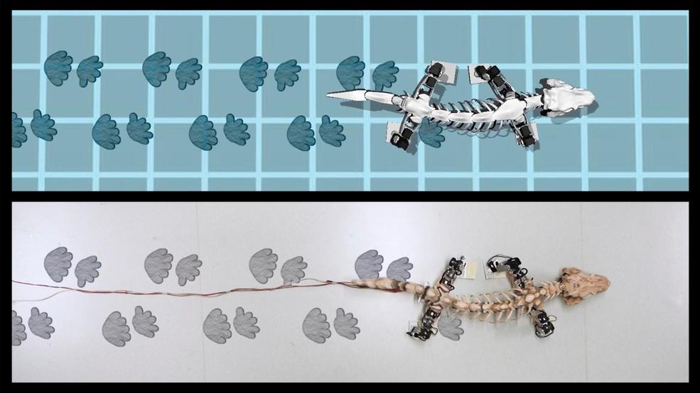 How did the earliest land animals move? Scientists have used a nearly 300-million-year old fossil skeleton and preserved ancient footprints to create a moving robot model of prehistoric life.