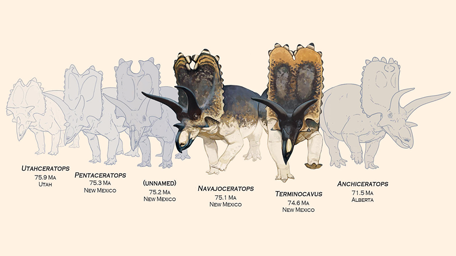 Named Navajoceratops sullivani and Terminocavus sealeyi, both species belong to Ceratopsidae, the...
