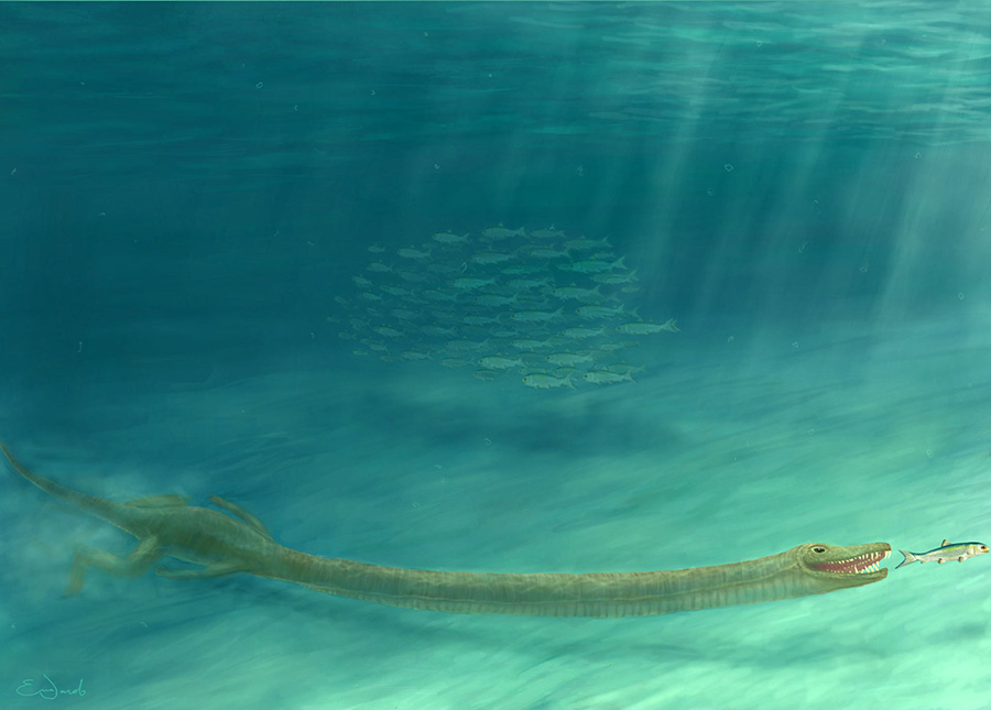 Tanystropheus hydroides, the newly-described species of reptile that lived 242 million years ago (Triassic period), was about 6 m (20...
