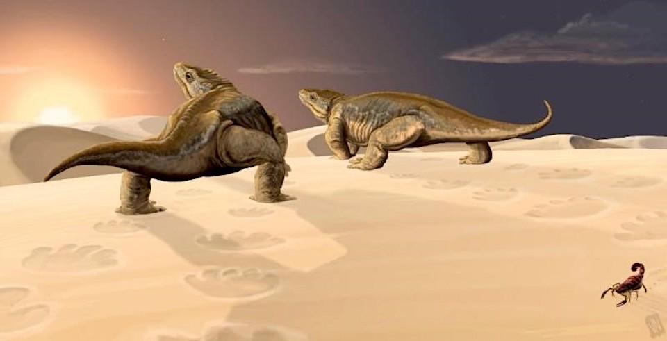 Nearly 300 million years ago, in a sandy desert now preserved as Coconino Sandstone at Grand Canyon National Park, some creatures walked across an area left moist very likely by an oasis. Those tracks, revealed today in a remote area of the national park, likely...