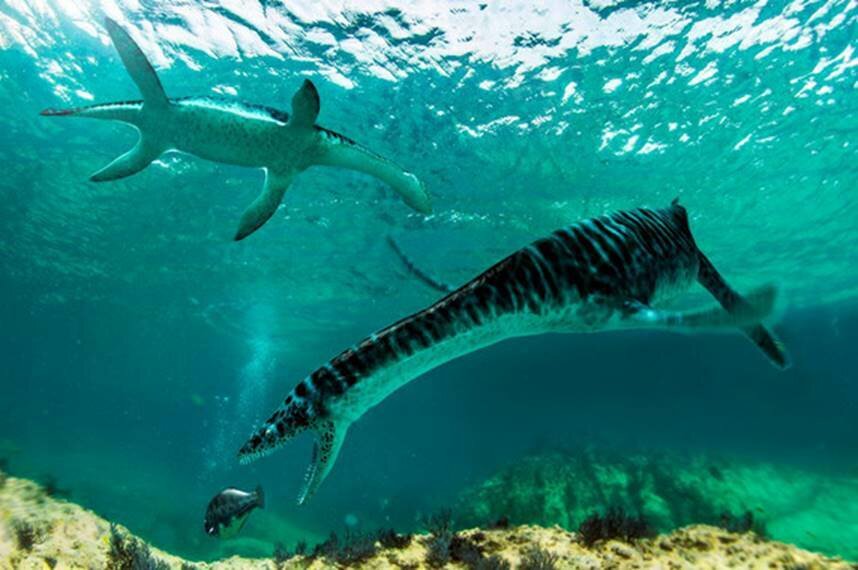Plesiosaurs, erroneously viewed as dinosaurs, inhabited all Earth's oceans between 200 million and 65 million years ago.