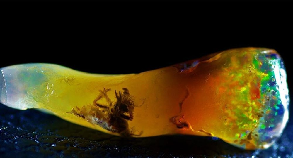 An opal, purchased a year ago, produced a most unusual discovery, as it contained an ancient insect embedded within it.