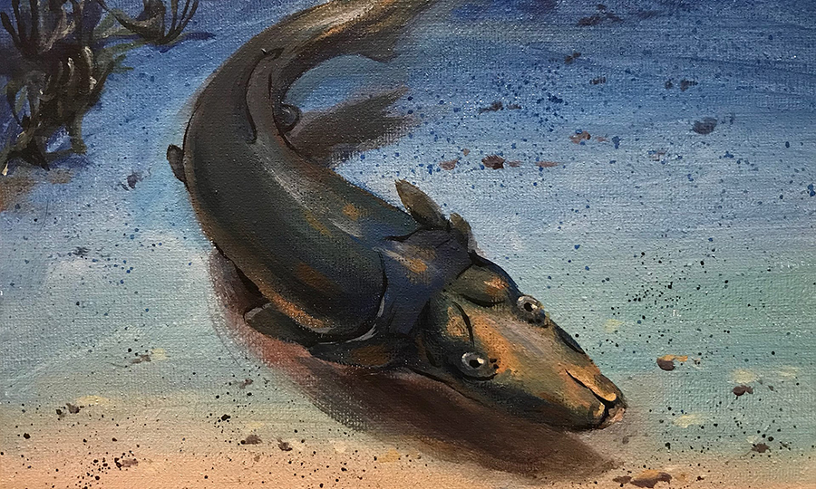 Paleontologists have discovered the remarkable fossil of a bizarre armored fish with a long, paddle-like beak resembling that of a platypus.