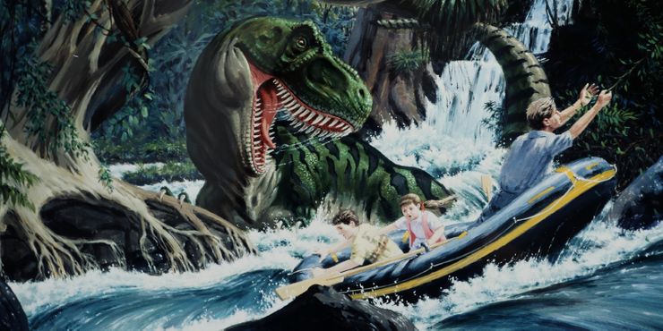 The sequence was going to feature Alan Grant, Lex, and Tim finding a river raft and using it to traverse through Isla Nublar with ease, looking at more dinosaurs. It would then become a dangerous scene when they drift by a sleeping Rexy who would wake up and chase the heroes through the water and into a lagoon.
