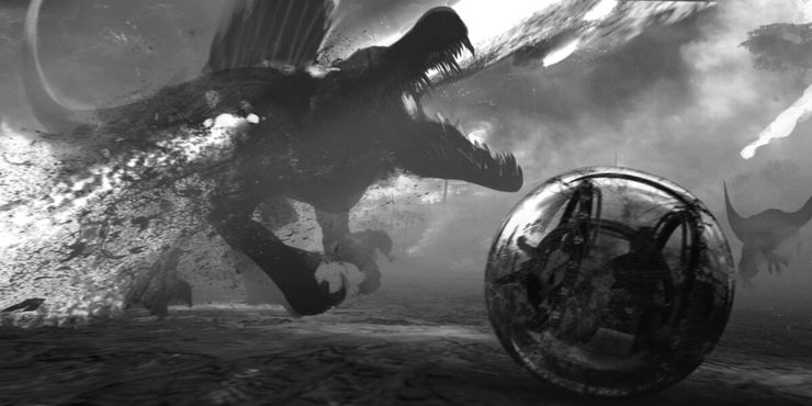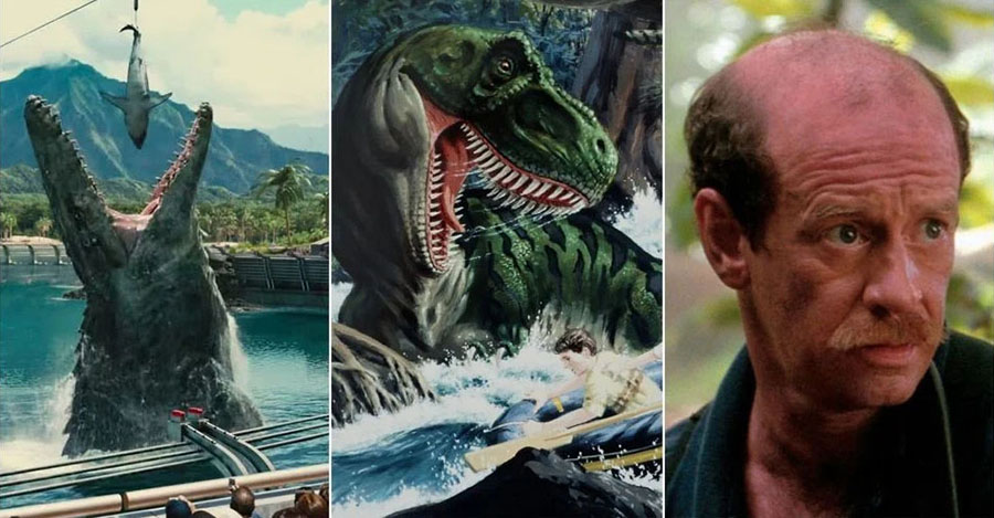 What was already considered a great prologue to the movie that felt like a return to roots for the series with the stormy Rexy and Mosasaurus sequence was actually supposed to be completely different and was teased via early concept art from the film.
