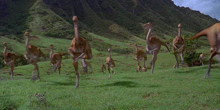 One of the most memorable dinosaurs from the original Jurassic Park was the Gallimimus, a bird-like creature that traveled in large herds. In Jurassic Park, a big group of Gallimimus is seen stampeding across a meadow on the island, trying in vain to avoid an attack from the recently freed T-Rex. The Gallimimus was among the dinosaurs confirmed to have been saved in Fallen Kingdom prior to Jurassic World's destruction and was able to escape onto the mainland. Although its numbers have been reduced, it's possible that Jurassic World: Dominion will see the Gallimimus make a comeback as a species.