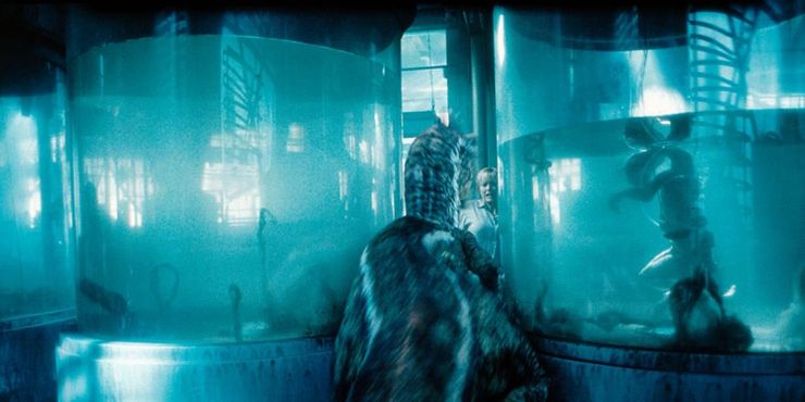 The embryonic lab featured in Jurassic Park 3 shows audiences that geneticists were experimenting with spinosaurus for some greater plan. Within large stasis chambers are bodies of fetal spinosaurs, some of which appear to have deformities.